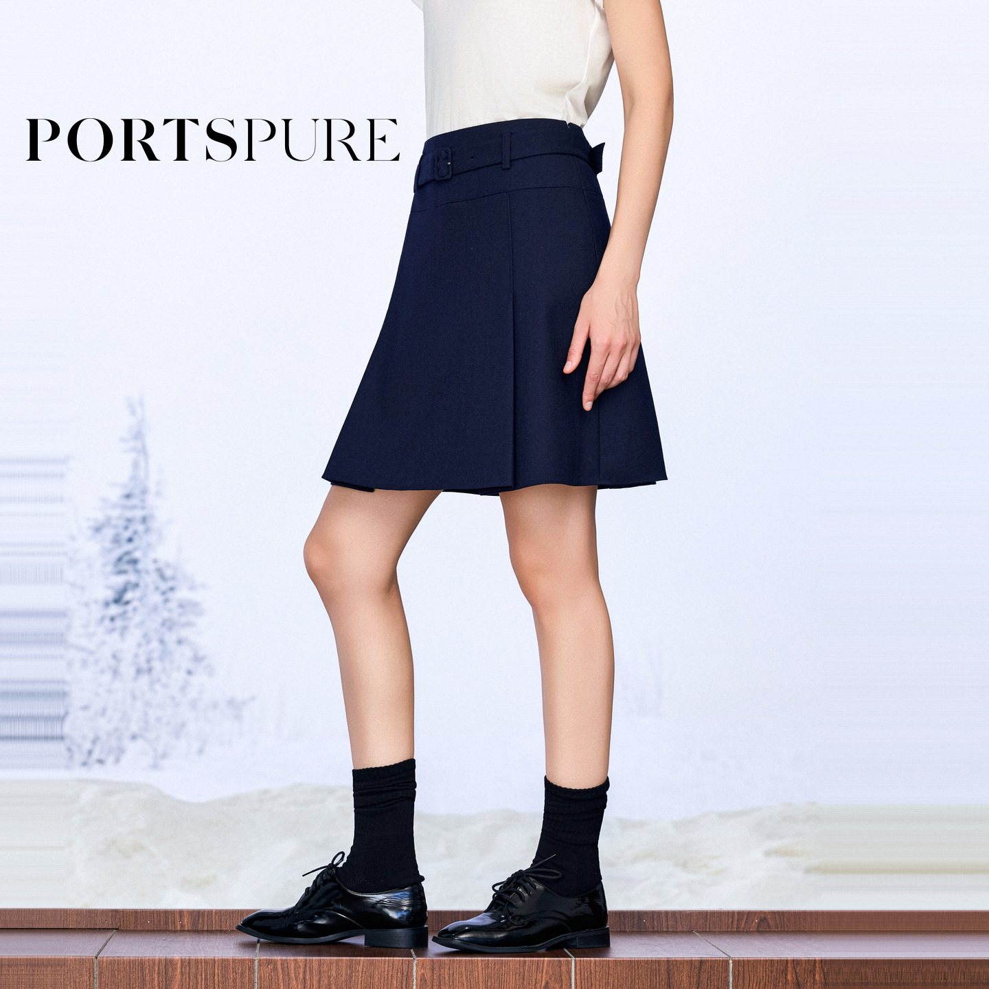 商场同款 宝姿PORTSPURE女装2025秋冬新品优雅经典A字半身短裙