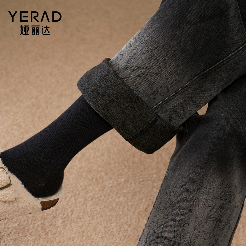 娅丽达女裤2025秋冬新款加绒微喇牛仔裤女加厚筒喇拖地裤时髦裤子