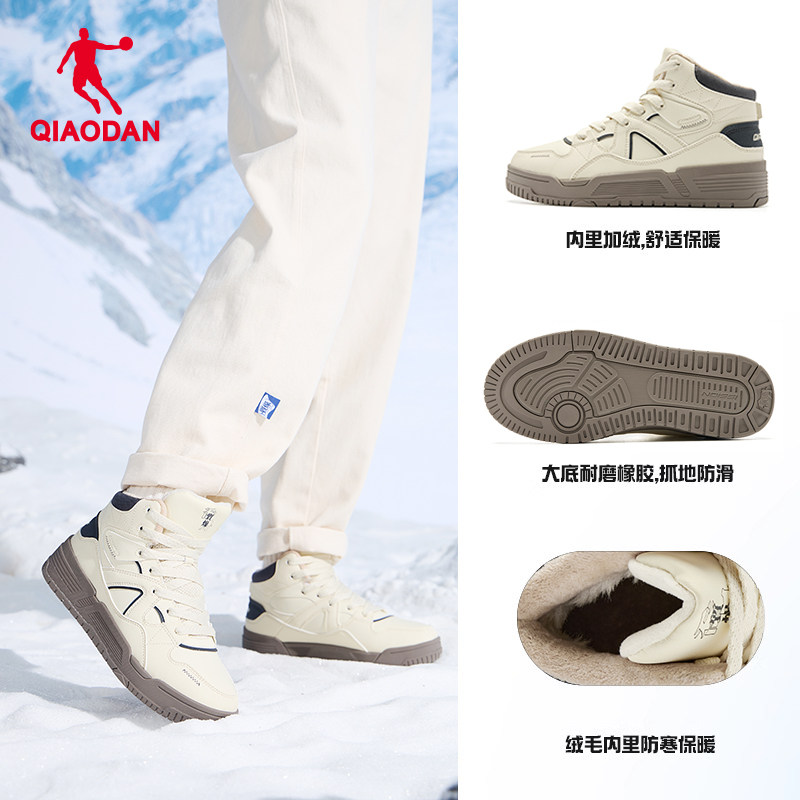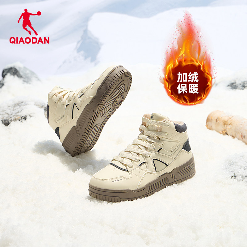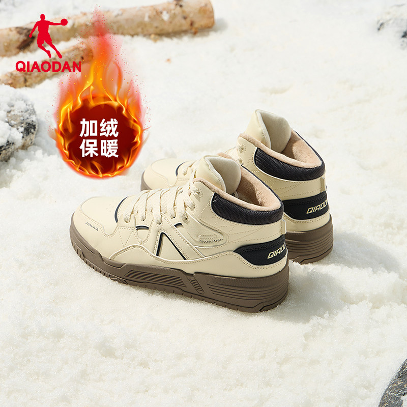 乔丹女鞋加绒棉鞋2025冬季新品加厚保暖高帮板鞋雪地靴运动鞋女款