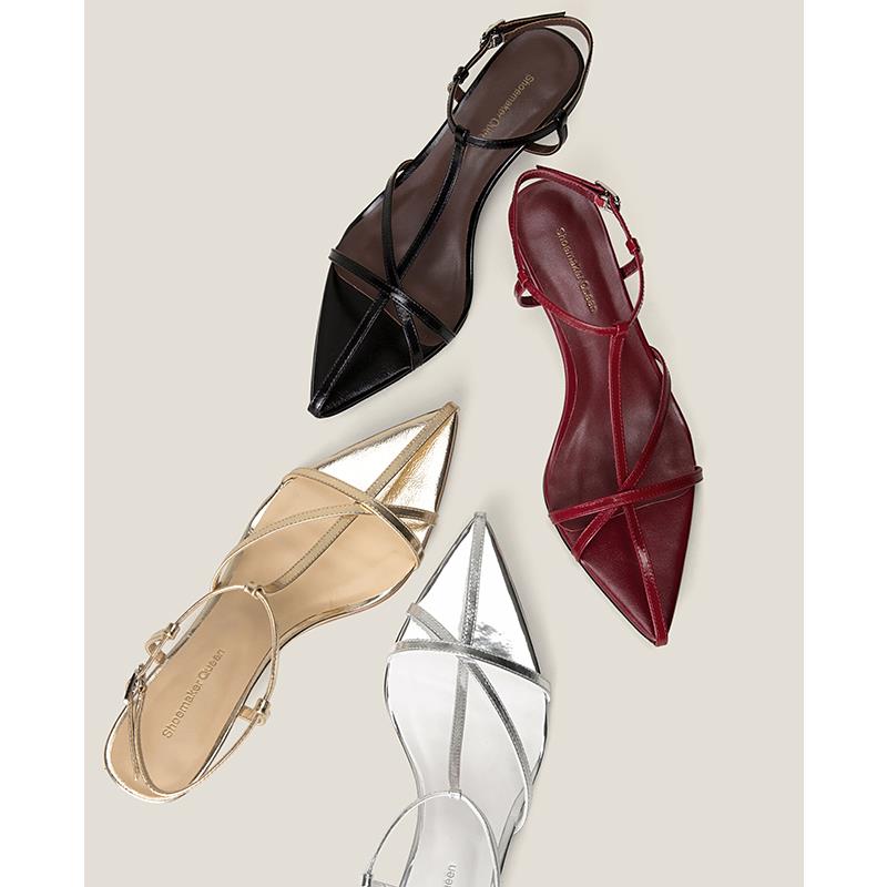 【鞋匠女王×旅游度假风】尖头小猫跟露趾鞋法式细带组合中跟凉鞋