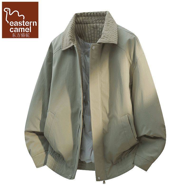 东方骆驼翻领羽绒服男2025冬季新款宽松保暖卸寒鸭绒夹克外套男款