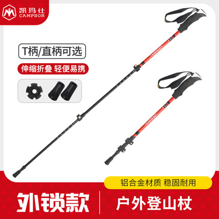 外锁登山杖超轻手杖伸缩可折叠铝合金男女款徒步爬山户外装备防滑