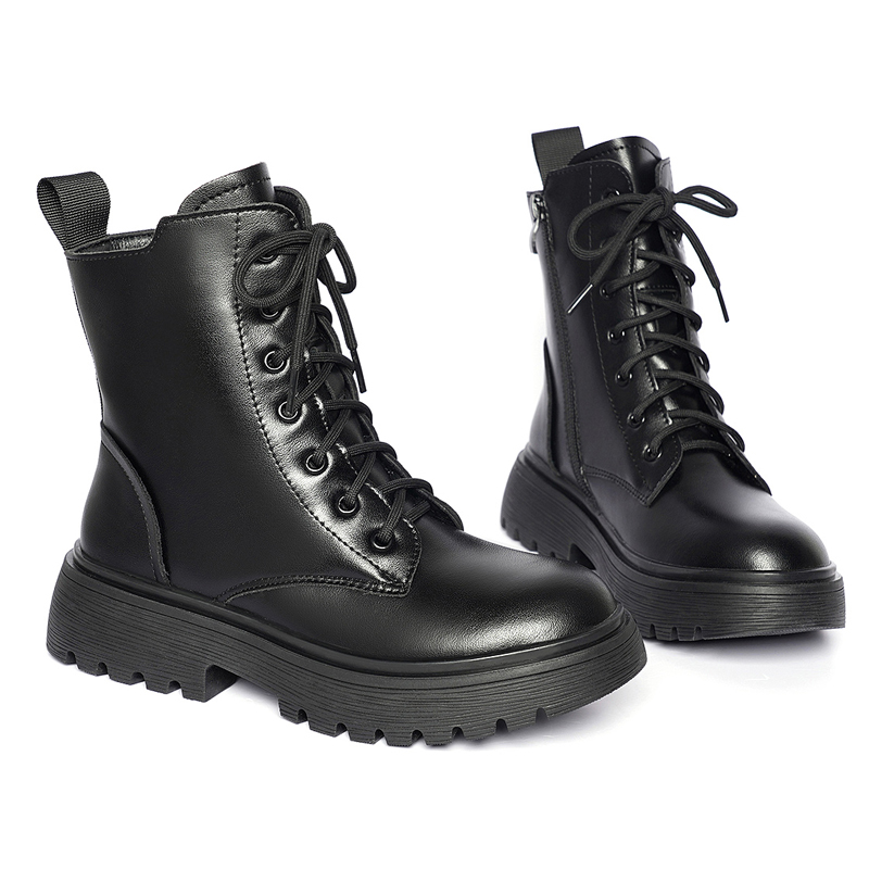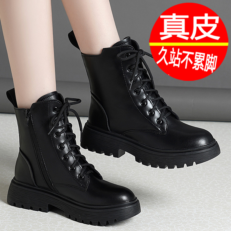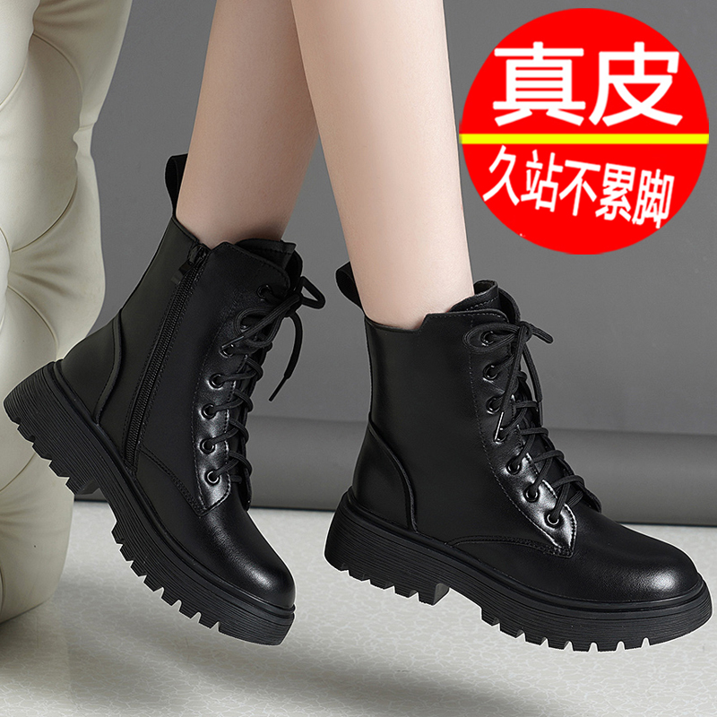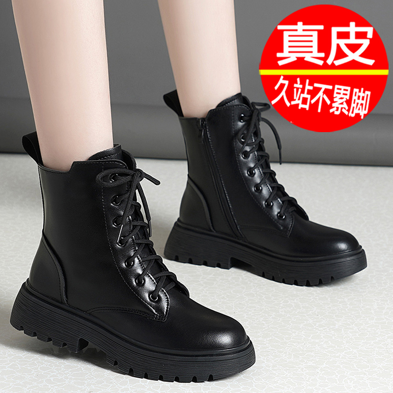 2025春秋短靴真牛皮马丁靴女厚底软底真皮女靴子时尚百搭妈妈皮靴