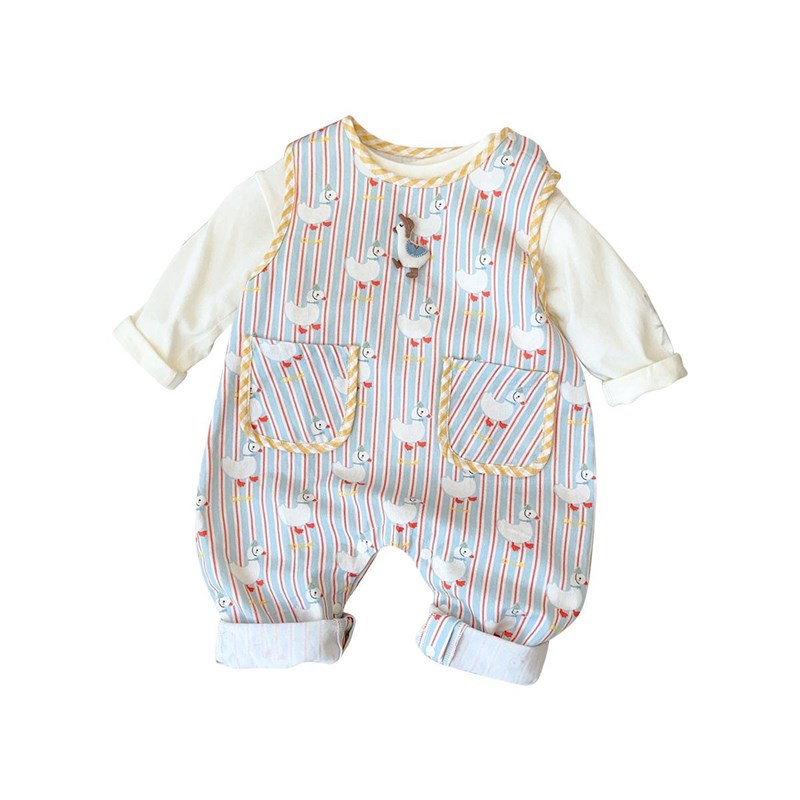 2025春秋季婴儿韩版洋气条纹背带裤男女宝宝可爱连体衣外出服套装