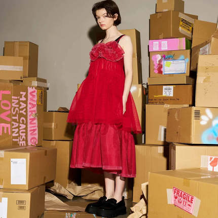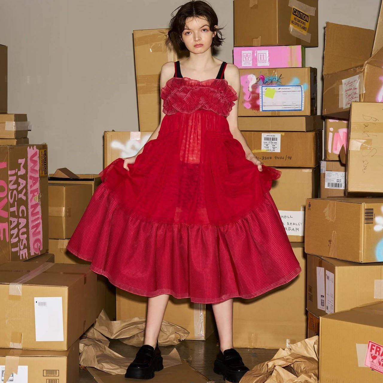 2025新品 日系 画报款褶皱多层网纱甜美 公主连衣裙