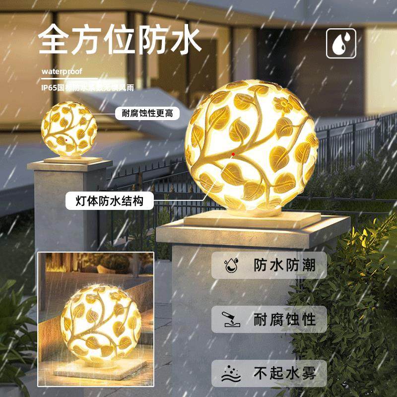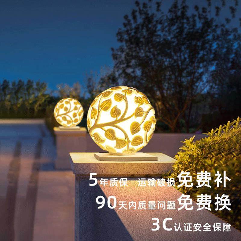 太阳能柱头灯户外圆球灯防水别墅花园球形灯庭院围墙灯大门柱子灯