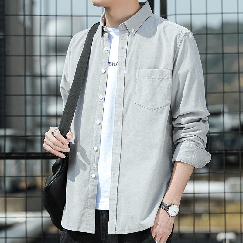 秋季新款男士纯棉长袖衬衫宽松休闲红色灯芯绒衬衣外套寸男装潮流