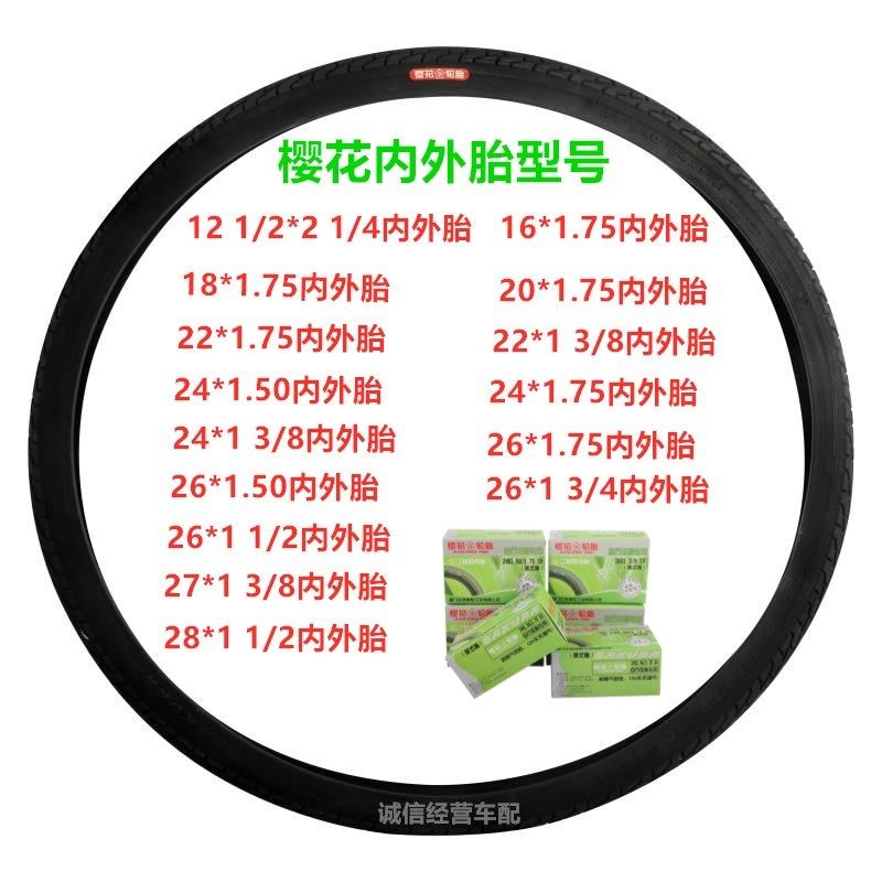 正樱花自行车内外胎14/16/18/20/22/24/26寸/1.50/1.75/2.125轮胎
