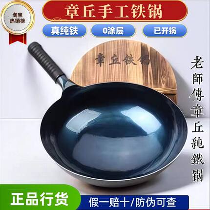 正宗章丘手工铁锅传统老式炒菜锅官方旗舰店家用无涂层不粘锅熟铁