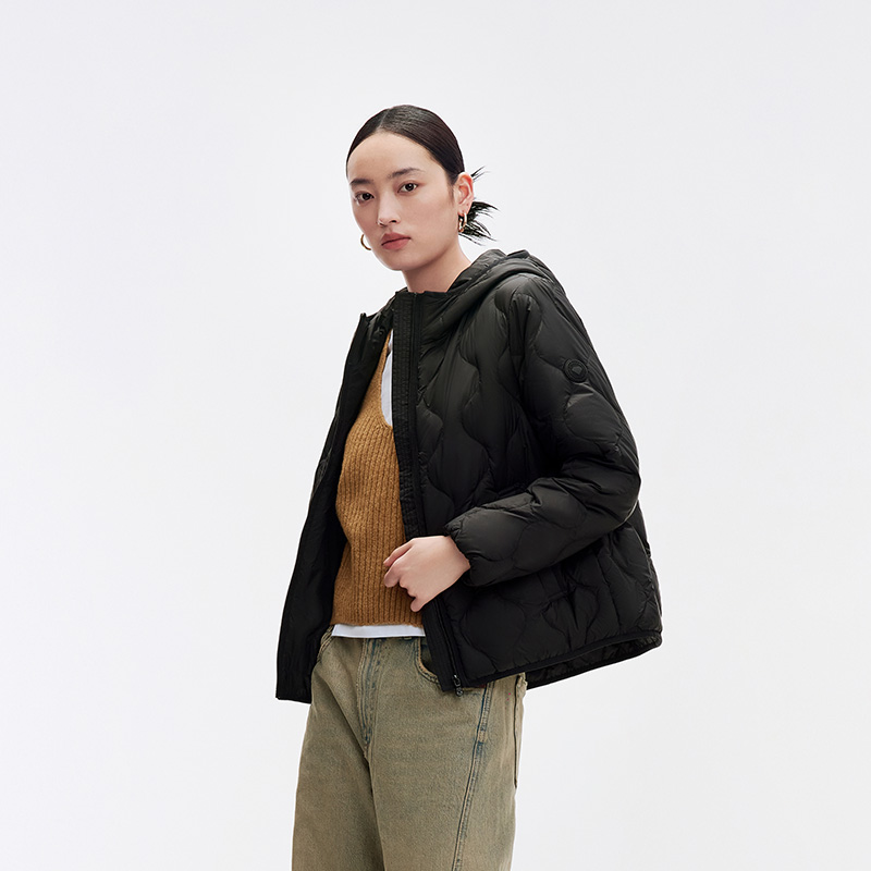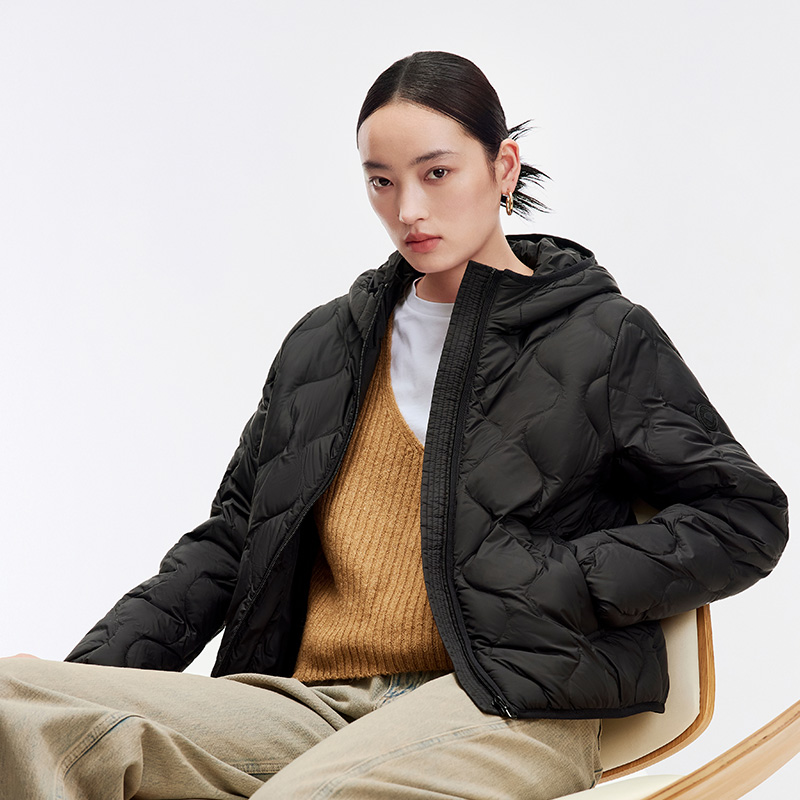 千仞岗秋季女士短款轻薄时尚百搭连帽保暖羽绒服叠穿外套