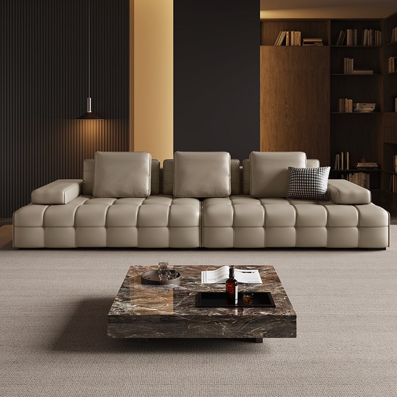 意式极简劳伦斯真皮沙发客厅轻奢大师设计别墅大户型头层牛皮组合