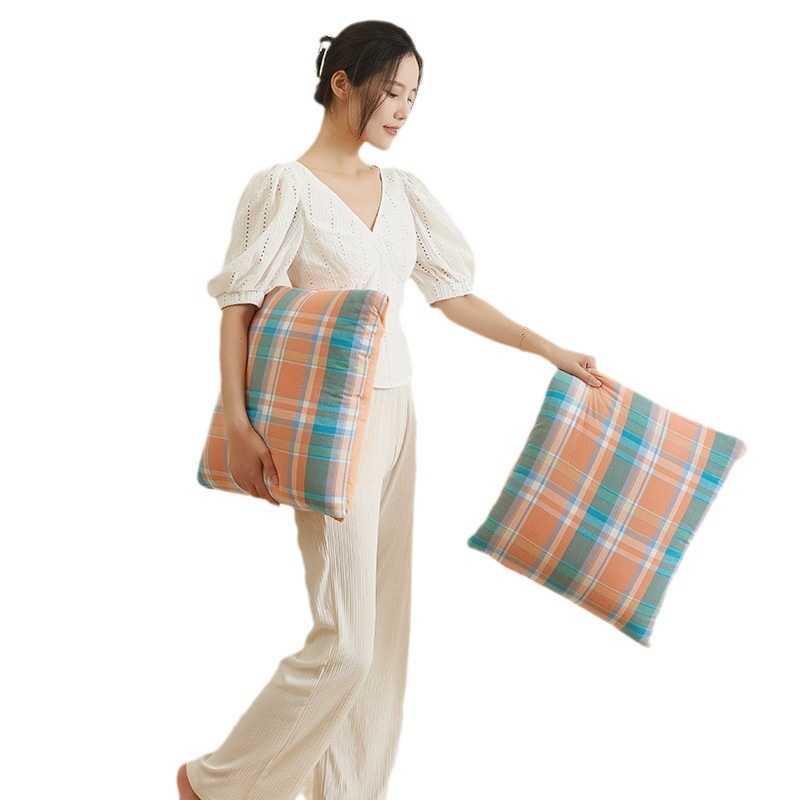 全棉水洗棉抱枕被子两用车载办公室午休空调被沙发靠垫枕头折叠
