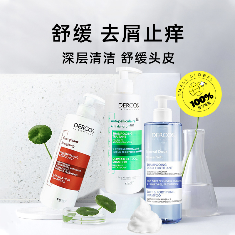 【自营】薇姿绿标洗发水清爽控油去屑止痒滋养390ml*2进口