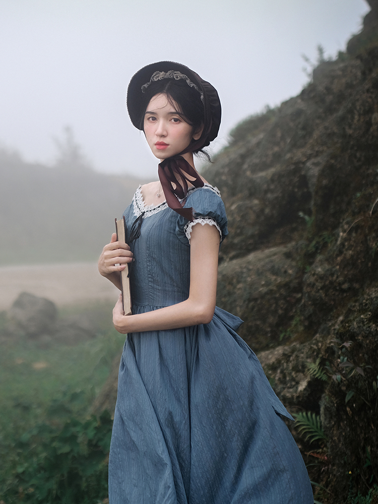 枕梦村庄 奈吉 中世纪复古宫廷欧式浪漫气质小妇人蕾丝大摆连衣裙