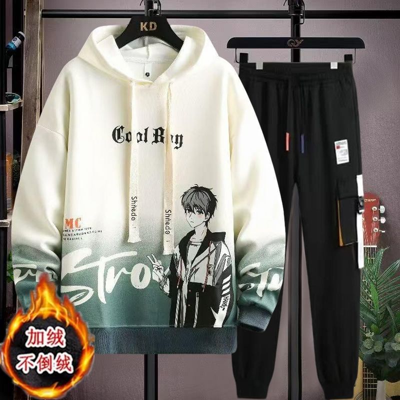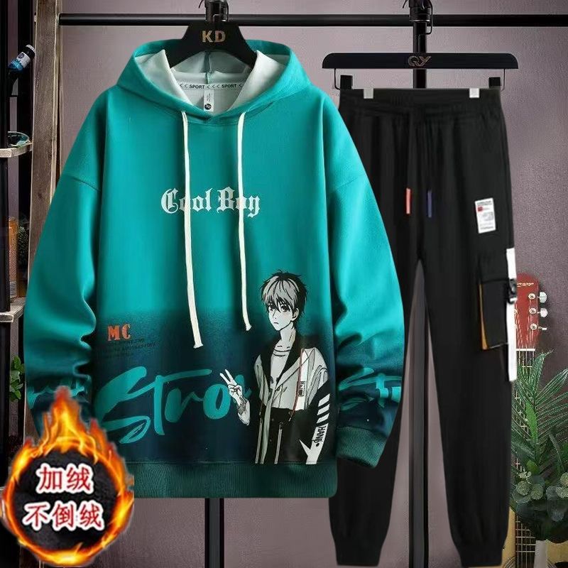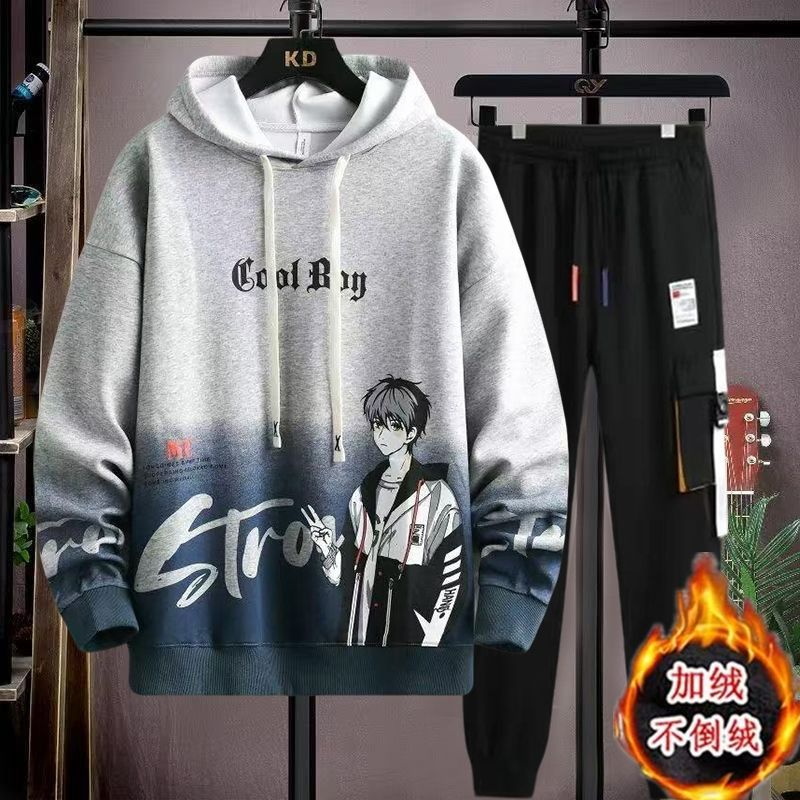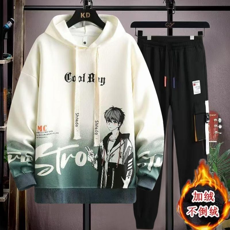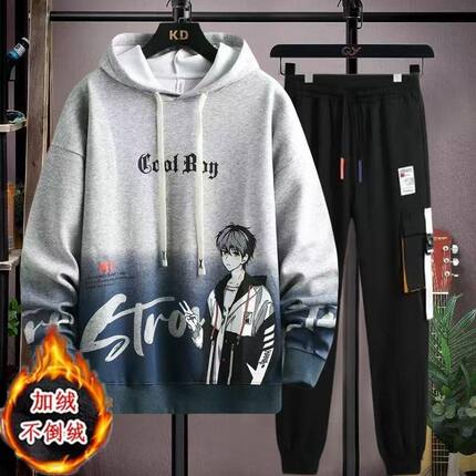 休闲套装男秋季新款宽松加大码潮流卫衣卫裤运动休闲两件套