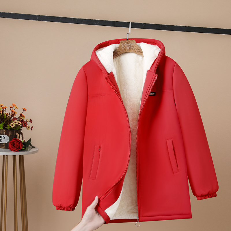 爆款特厚派克服女加绒加厚棉衣棉服女冬季中长款羊羔毛夹棉外套女