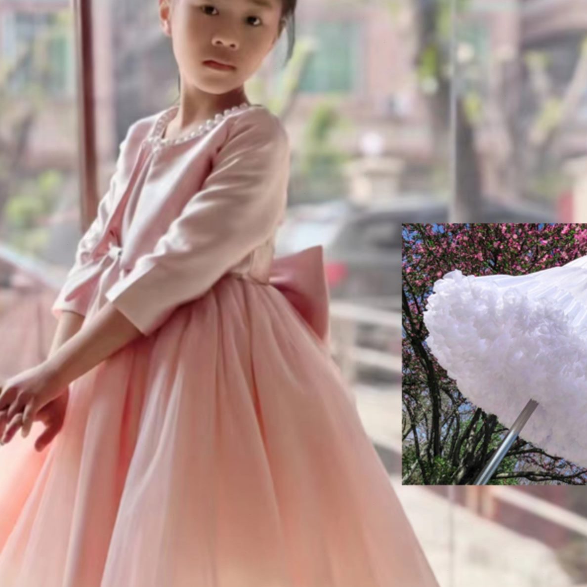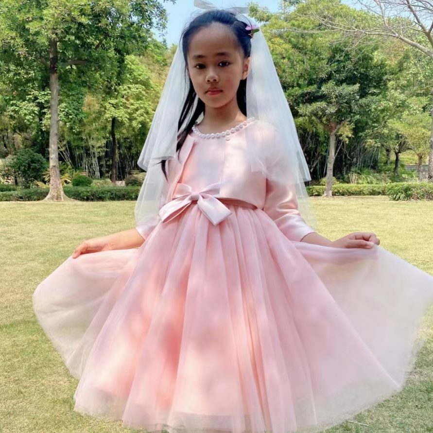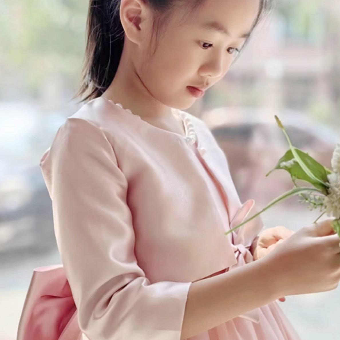 高端演出服花童女童礼服天连衣裙套装婚纱礼服生日秋冬公主裙粉色