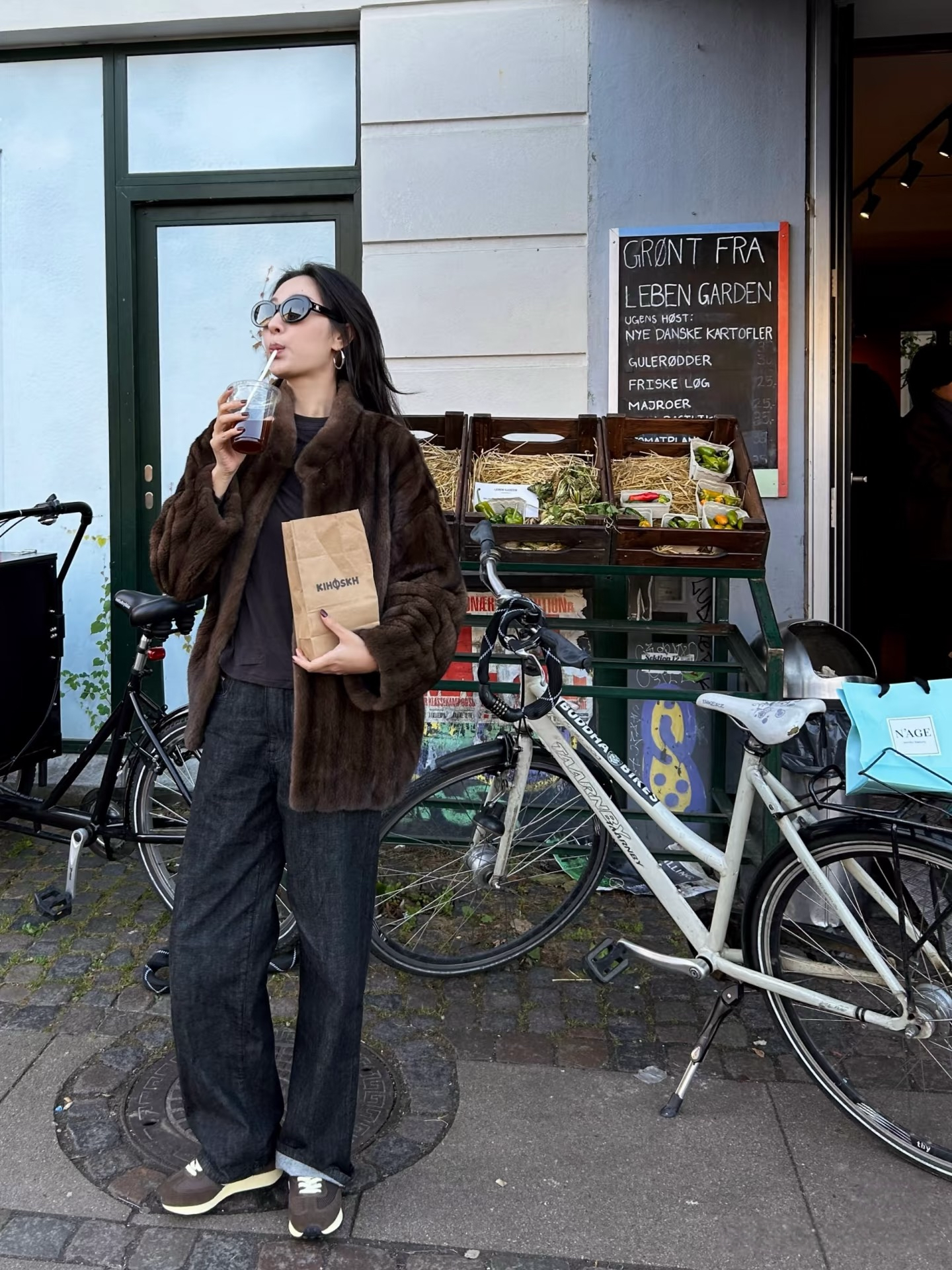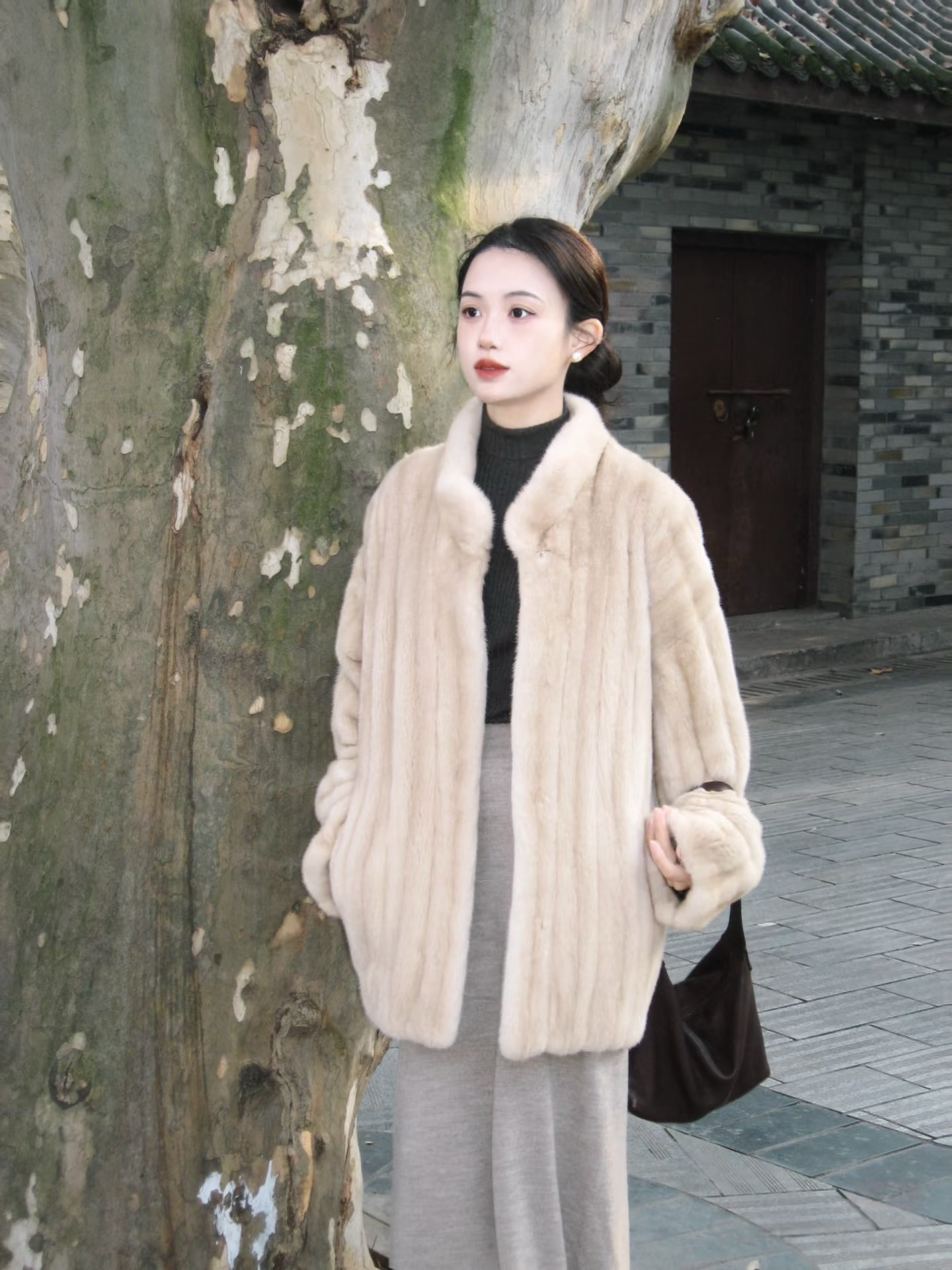 曼城韶光 仿水貂抽刀毛毛外套女复古米黄仿大衣外套冬季保暖新款