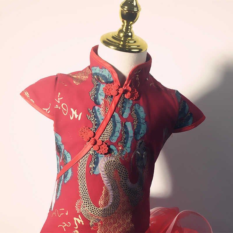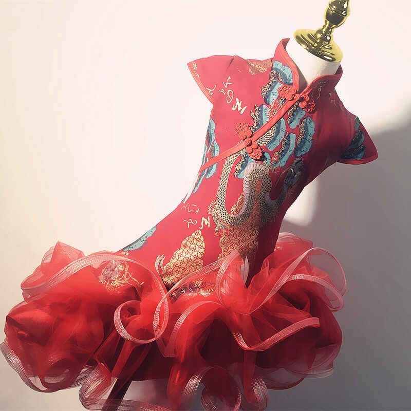 女童旗袍礼服唐装走秀舞台装民族风走秀服装中国风女装女童连衣裙