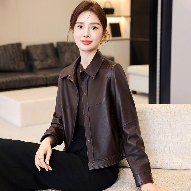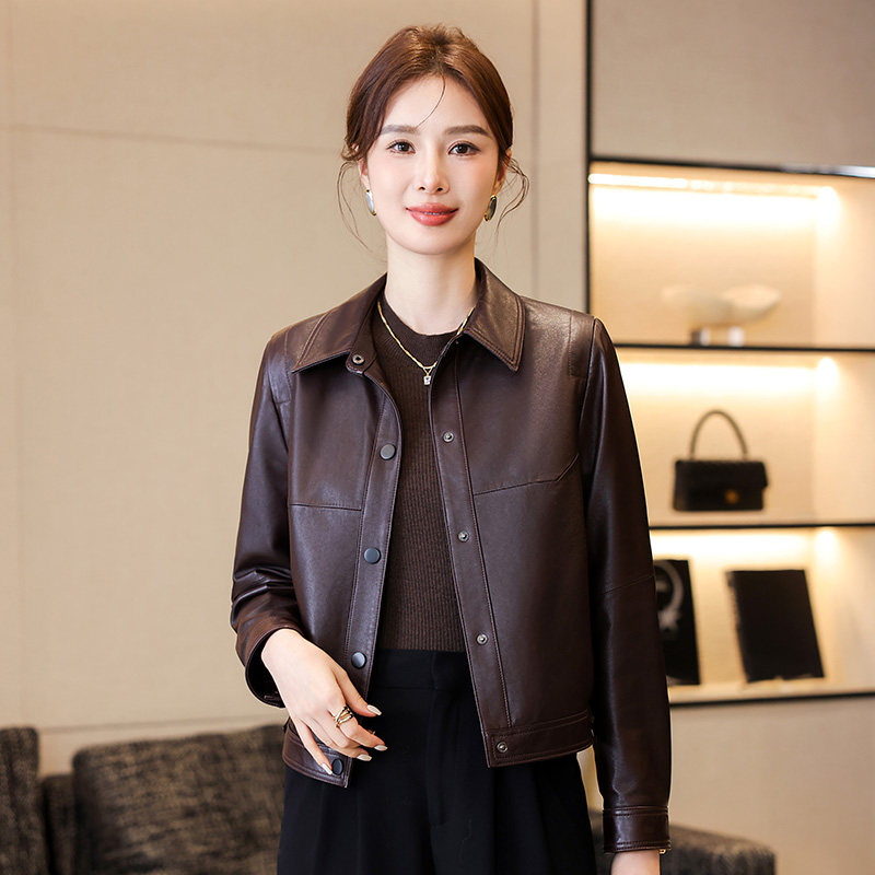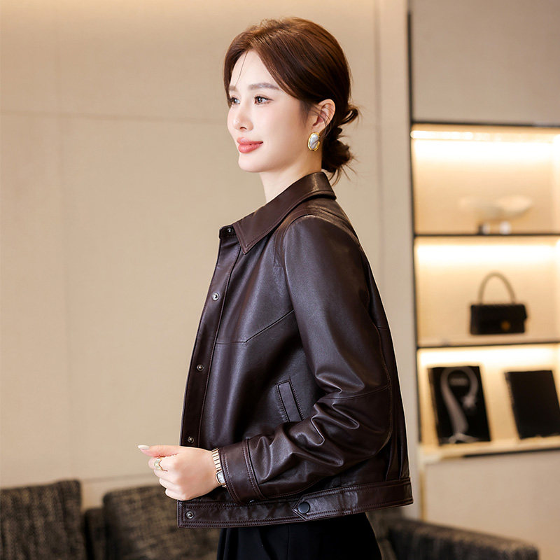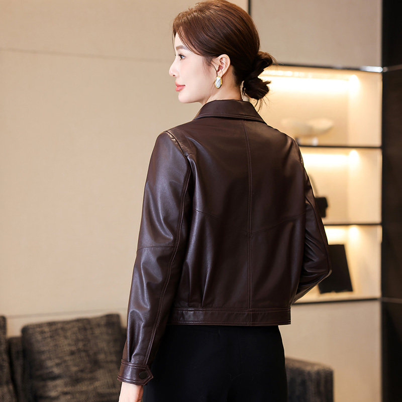 薇蔓娜海宁真皮皮衣女2025新款春秋时尚短款绵羊皮夹克机车服外套