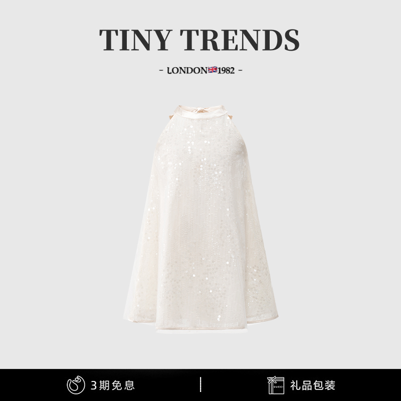 女童连衣裙夏季新款洋气儿童网纱亮片背心裙小女孩挂脖生日公主裙