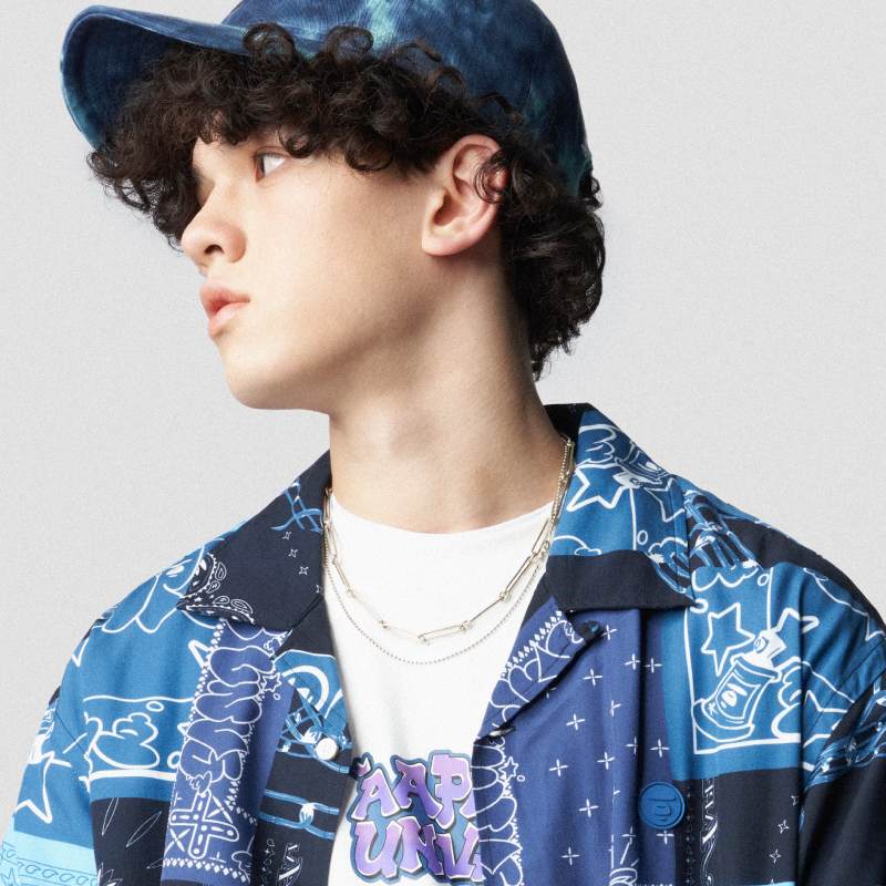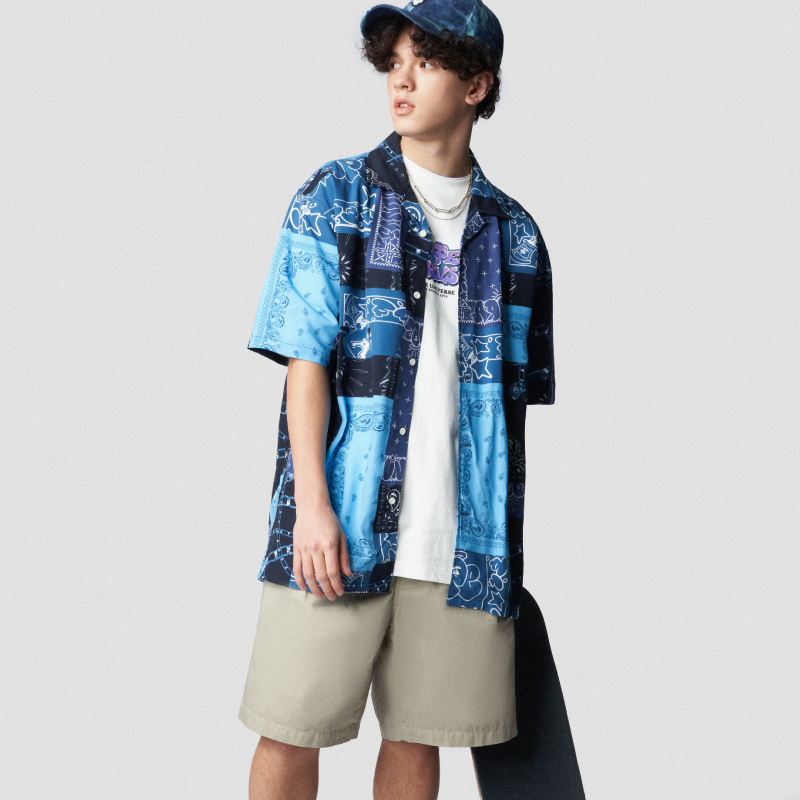 Aape旗舰店男装春夏印花多色撞色拼接街头潮流短袖衬衫8405XXI
