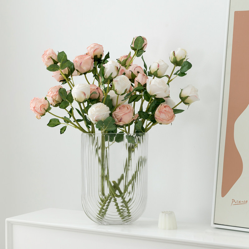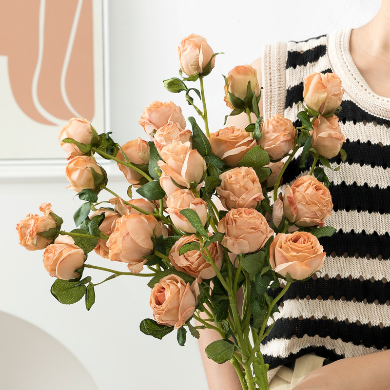 复古焦边小玫瑰仿真花多头仿干花束假花家居客厅婚庆装饰花艺摆件
