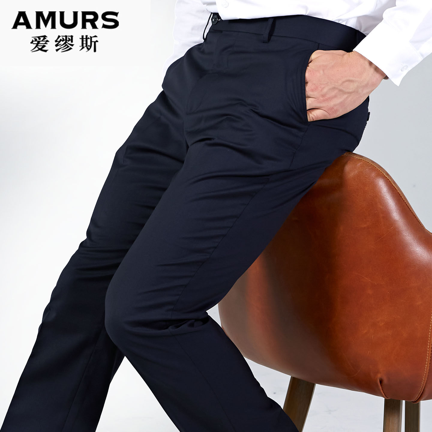 爱缪斯高端进口纯羊毛西裤男士商务正装中高腰宽松休闲西装裤子