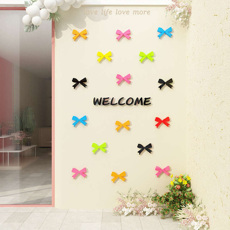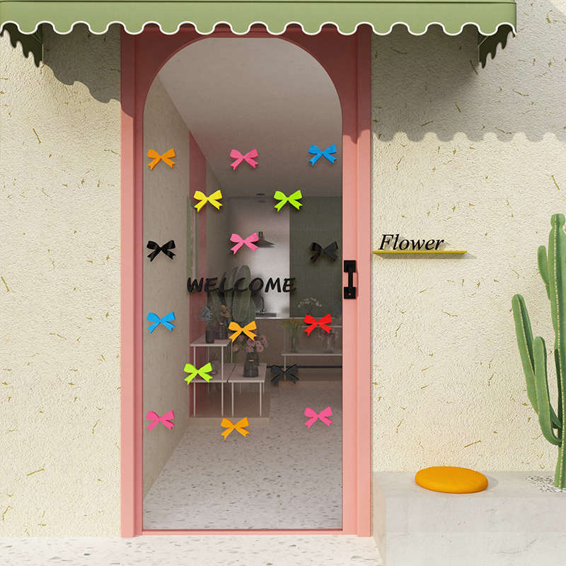 网红打卡拍照区布置奶茶店墙壁面装饰咖啡厅馆背景蝴蝶结玻璃贴纸