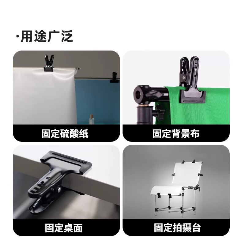 【4只装】白色金属摄影大力夹背景布背景纸PVC板夹子柔光屏黑色背景架固定支架宽口硫酸纸摄影棚拍摄拍照道具