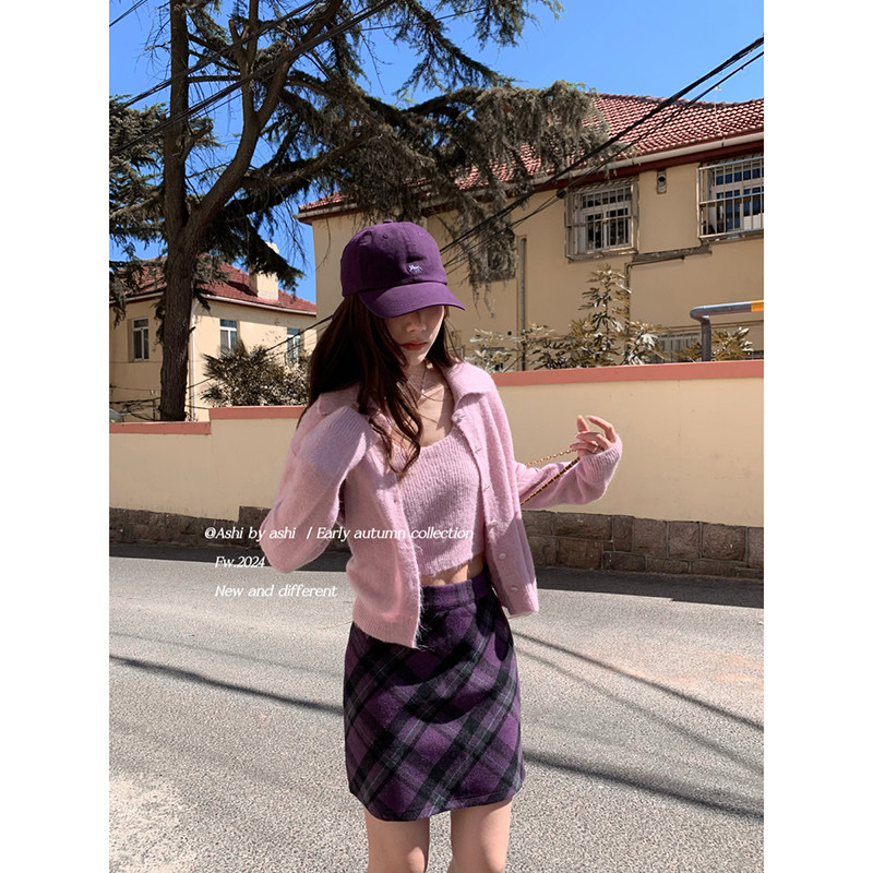 大于诗集 普罗达奇周末 翻领长袖针织开衫毛衣女短款修身背心套装