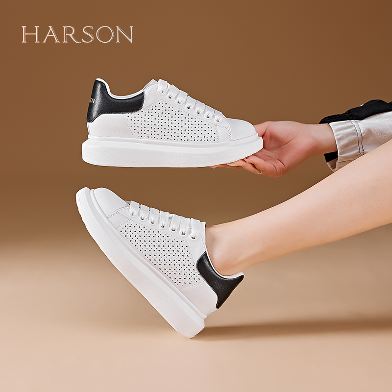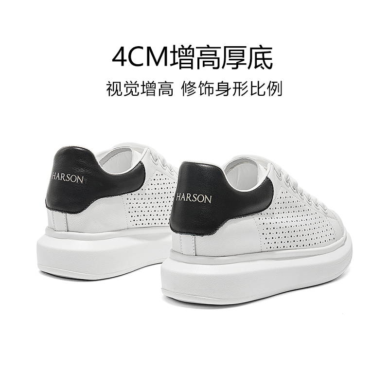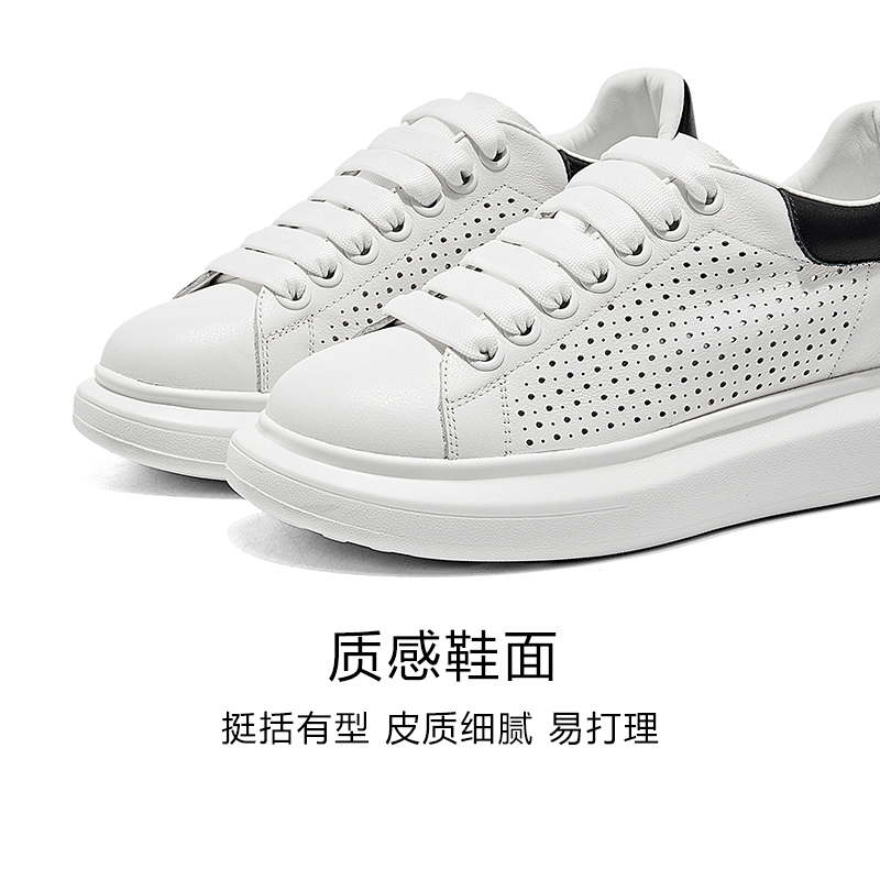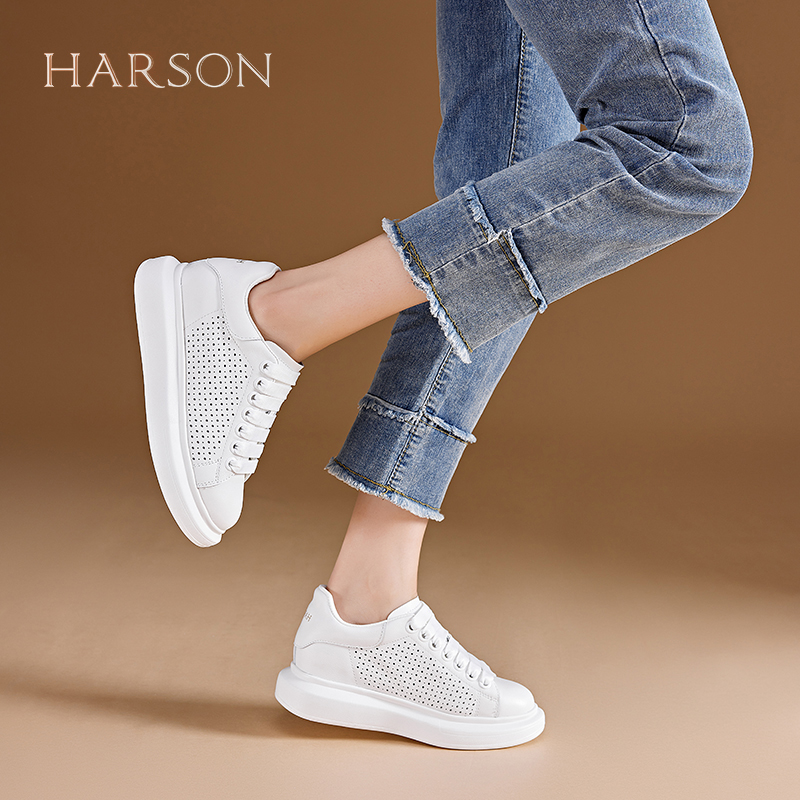 哈森真皮板鞋女款2025新款小白鞋厚底时尚休闲百搭夏季透气女鞋子