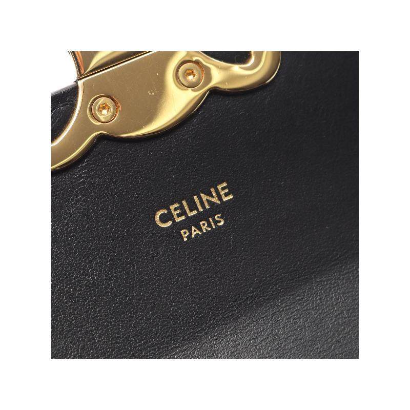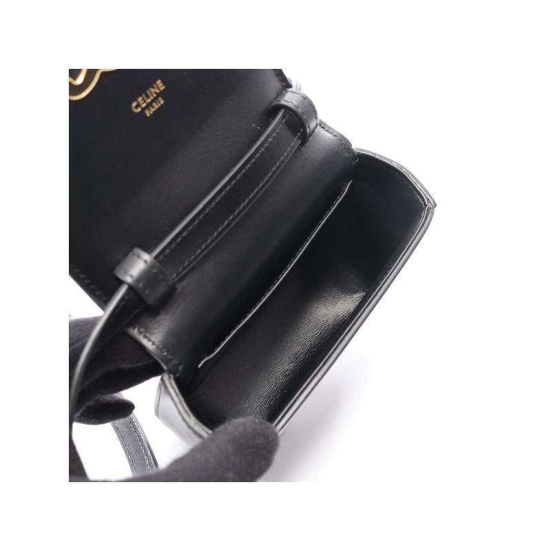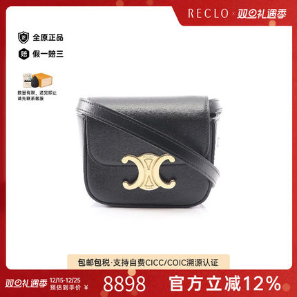 中古Celine赛琳女包B级9新Triomphe凯旋门老花牛皮斜挎包黑色
