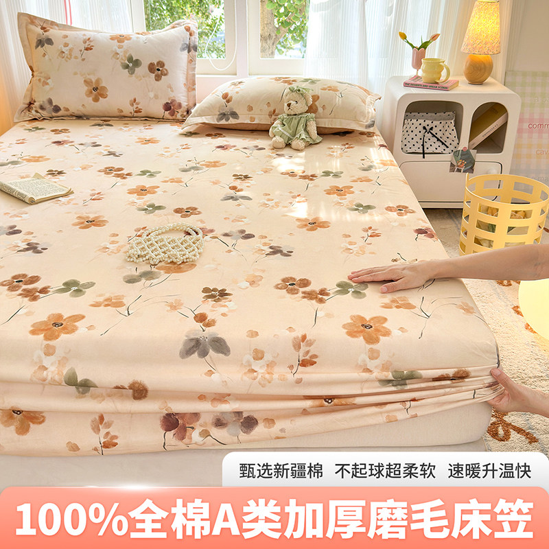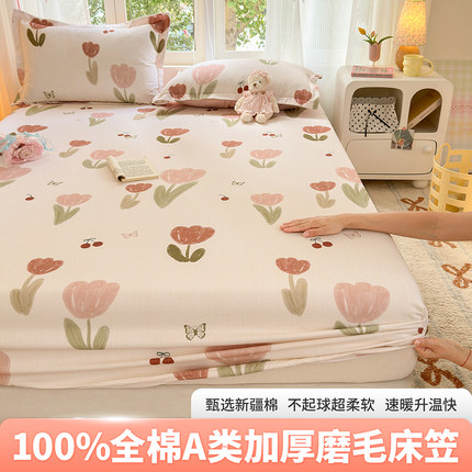 加厚全棉磨毛床笠单件1.2席梦思防尘保护套床罩1.5m1.8m2.0被套