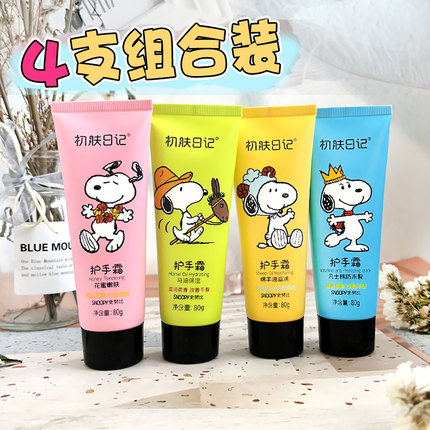 史努比护手霜4支手部护理套装滋润保湿补水防冻防干裂美手霜女男