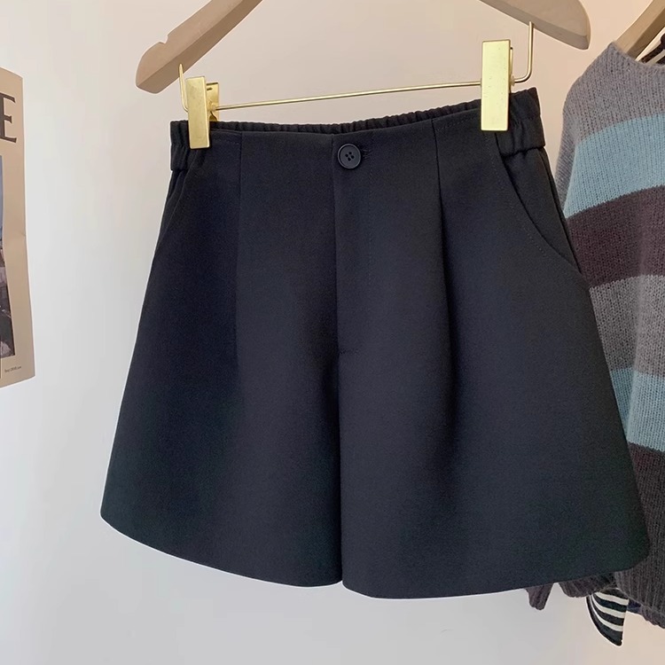 大码胖mm毛呢短裤女显瘦高腰呢子百搭靴裤外穿打底a字阔腿裤
