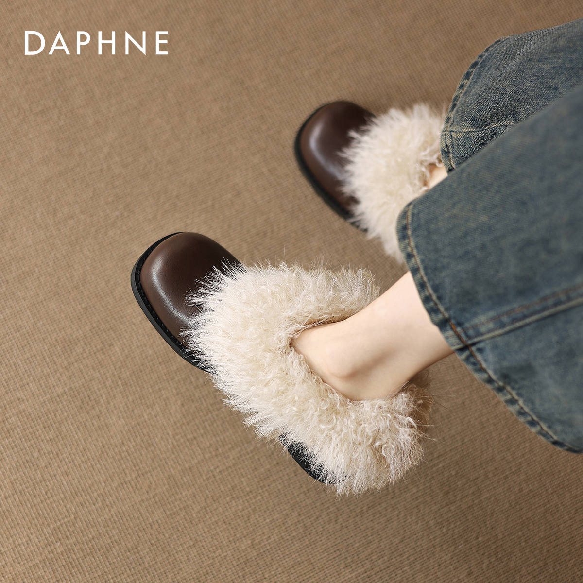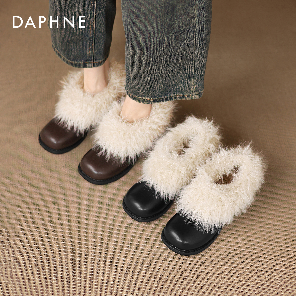 达芙妮法式高跟毛毛鞋女2025新款冬季加绒玛丽珍单鞋皮鞋雪地靴子