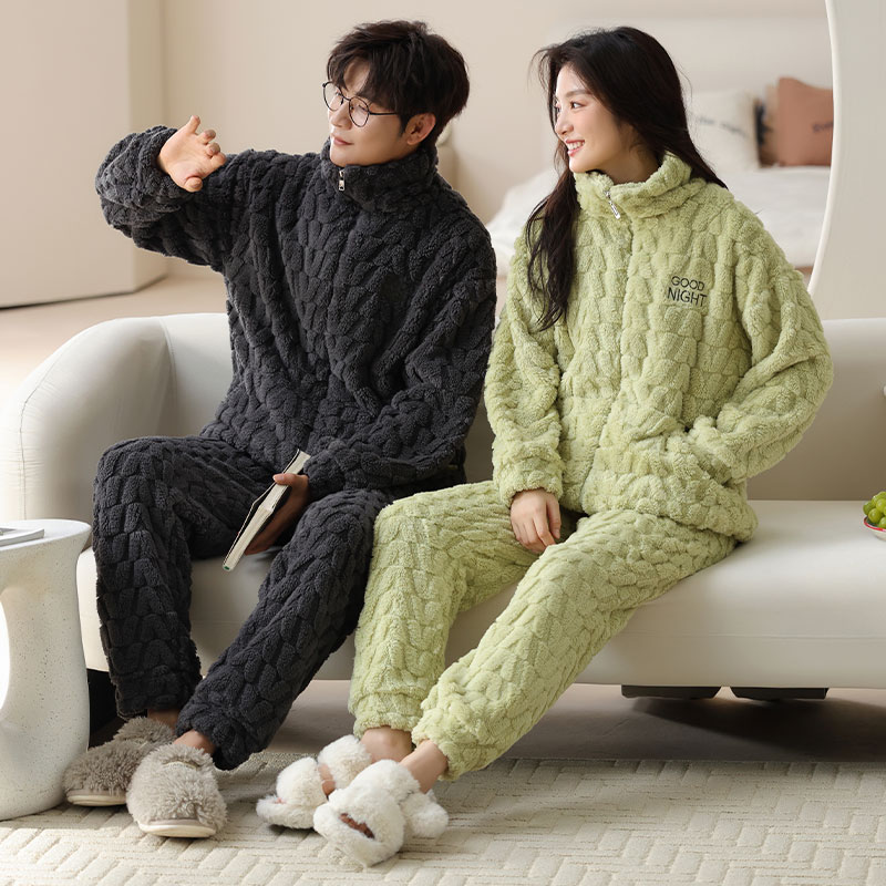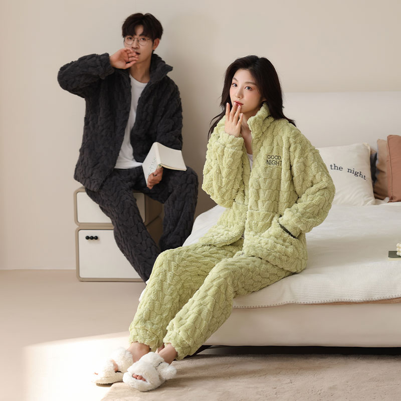 猫人情侣款睡衣法兰绒冬季新款加绒加厚保暖可外穿家居服女套装