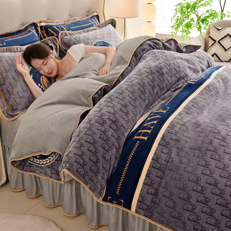牛奶绒四件套冬季加厚简约珊瑚绒床单被套双面法兰绒床上用品床裙