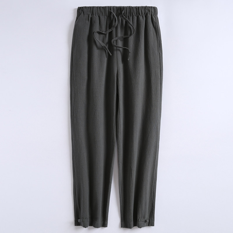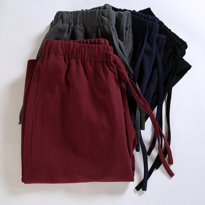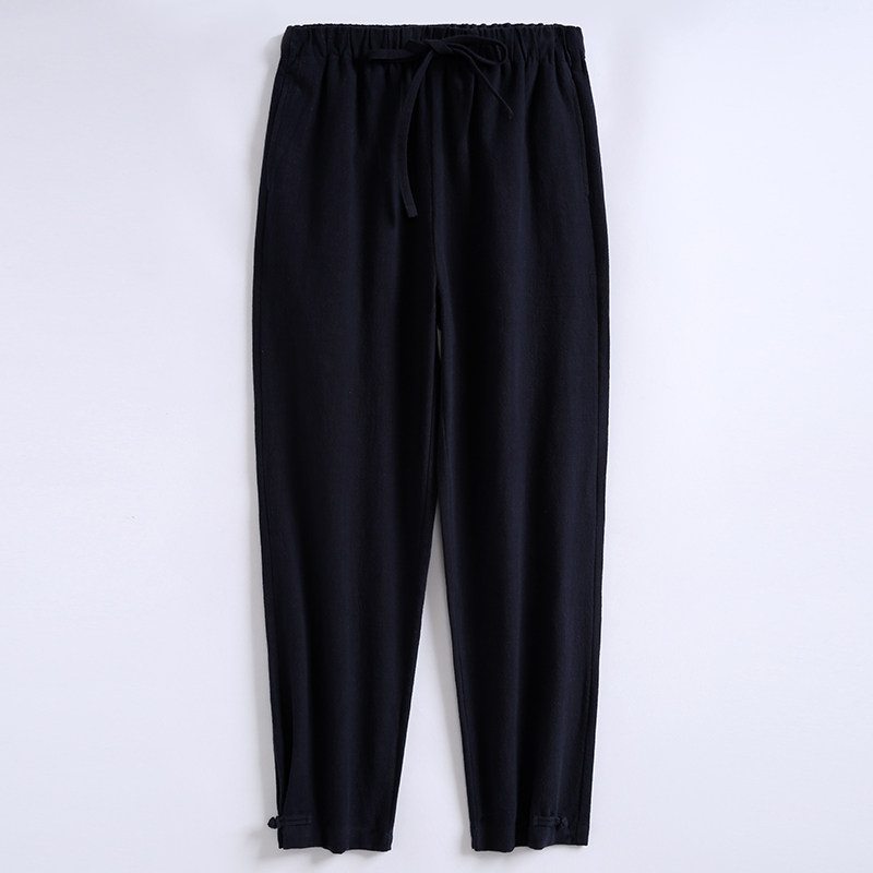中国风冬季苎麻宽松束脚休闲裤