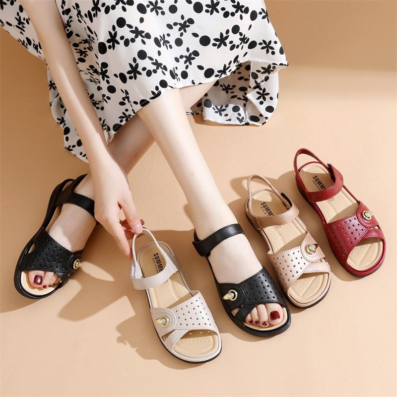 速发2024新款妈妈夏鞋底舒适外穿中年凉鞋平凉中老年防滑老人鞋轻