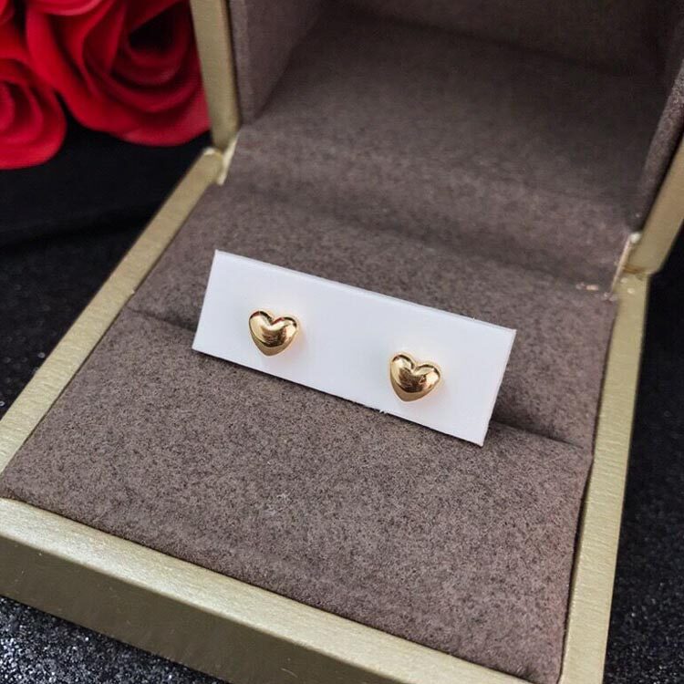 日本进口款 纯18K金空心小爱心耳钉 2018香港珠宝展新款 彩金耳饰