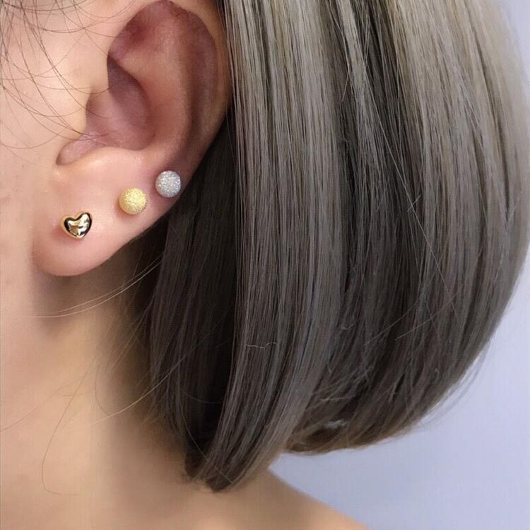 日本耳钉立体爱心18k金Au750