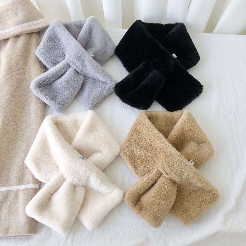 纯色围脖冬季加厚柔软韩版仿兔毛围脖毛毛领子纯色獭兔毛围巾
