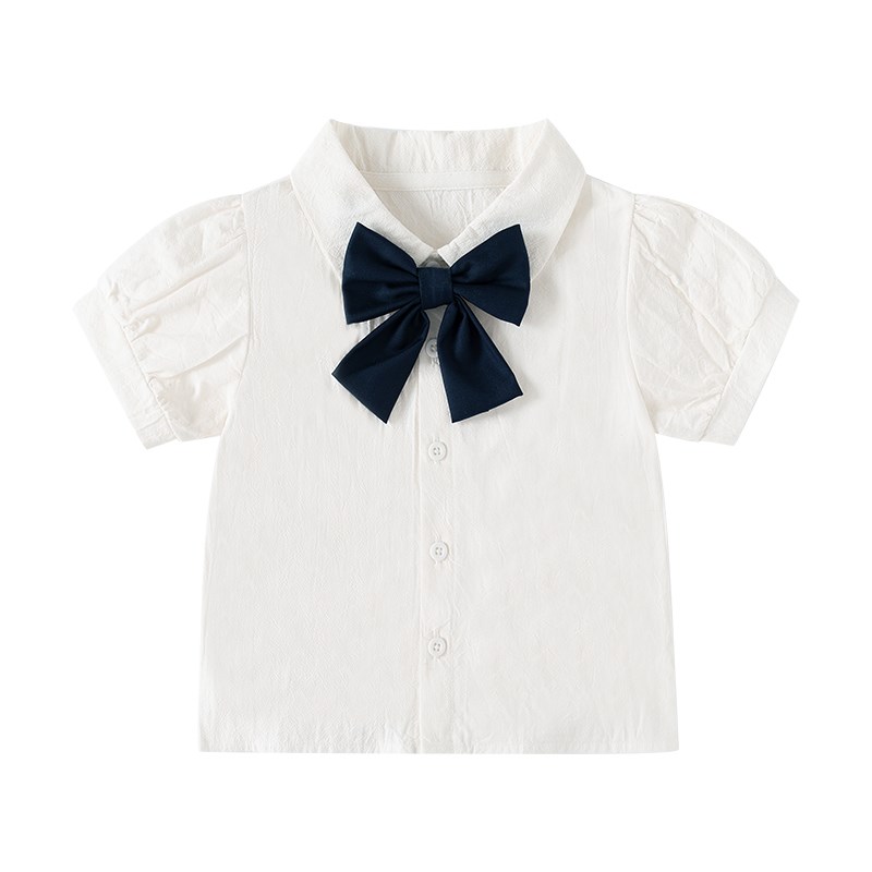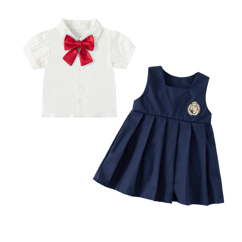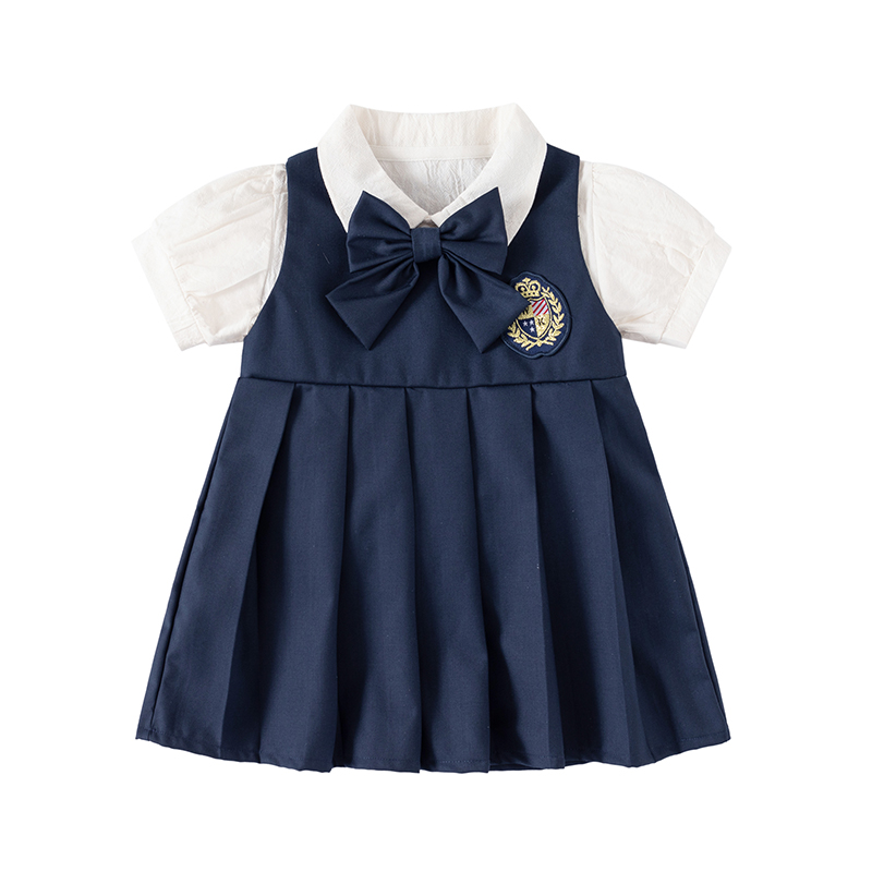 2024新款女童夏季连衣裙学院风套装领结周岁宝宝蓝色裙子礼服洋气
