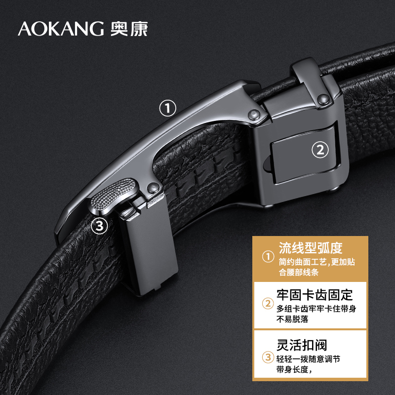 奥康皮带男士真皮新款商务裤带头层牛皮腰带生日礼物送爸爸男友