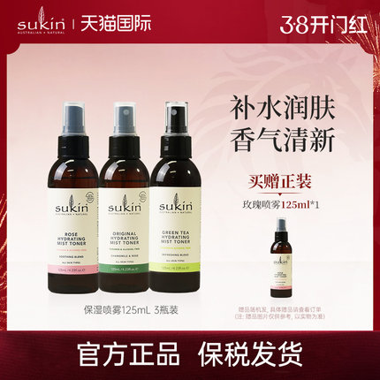 Sukin 澳洲进口保湿喷雾3件套 原味玫瑰绿茶保湿补水润肤水