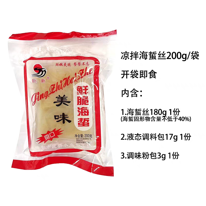 巨新海蜇丝200克每袋温州特产即食凉拌长岛野生海蜇皮海鲜下酒菜