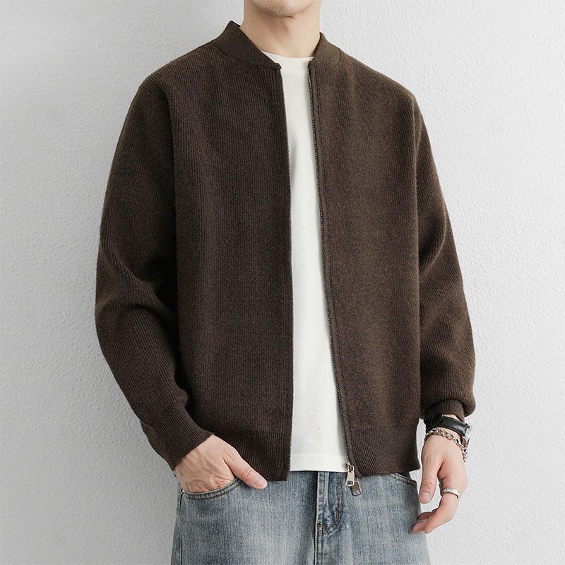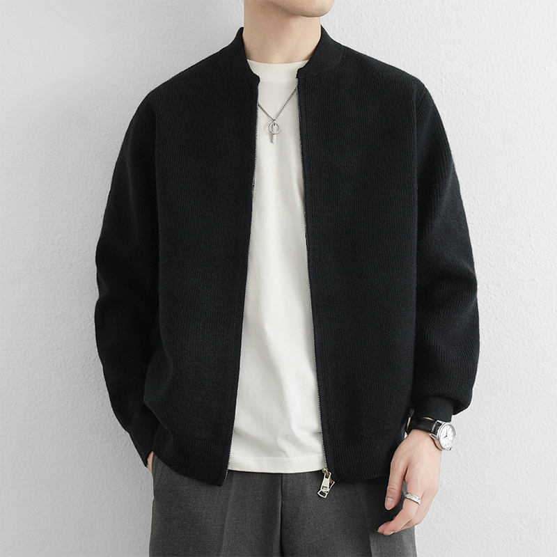 简约风棒球领开衫毛衣男士夹克外套秋冬季新款潮流百搭保暖针织衫