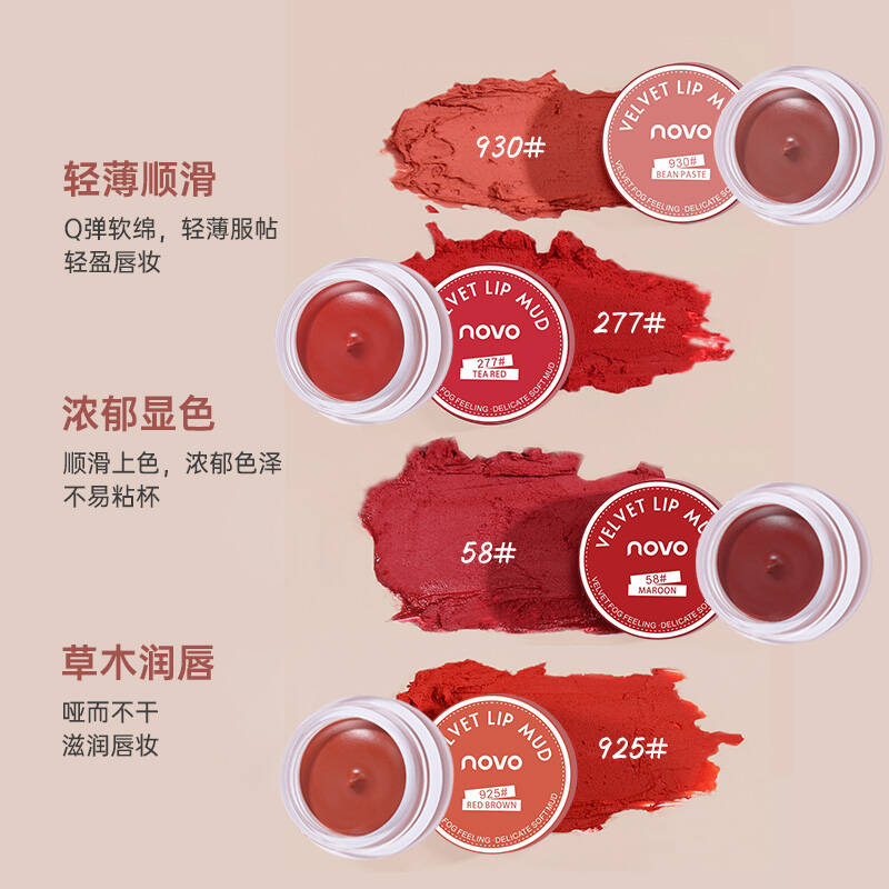 NOVO果冻唇泥口红丝绒雾面哑光唇釉唇彩唇冻胭脂平价学生款女美妆